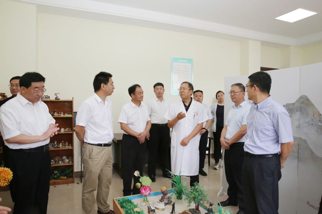 闫洪丰一行听取了市优抚医院打造“心安医院”具体举措介绍,了解了专业人才队伍配备、提供心理健康服务等工作开展情况,并在心理健康中心参观了儿童青少年心理门诊、心理评估室、宣泄解压室、沙盘游戏室、团体活动室、生物反馈室、重复经颅磁室等功能活动室,详细询问了各功能室的设施配备、设备功能及接诊服务情况,市优抚医院建设“心安医院”的工作成效得到调研组充分肯定。