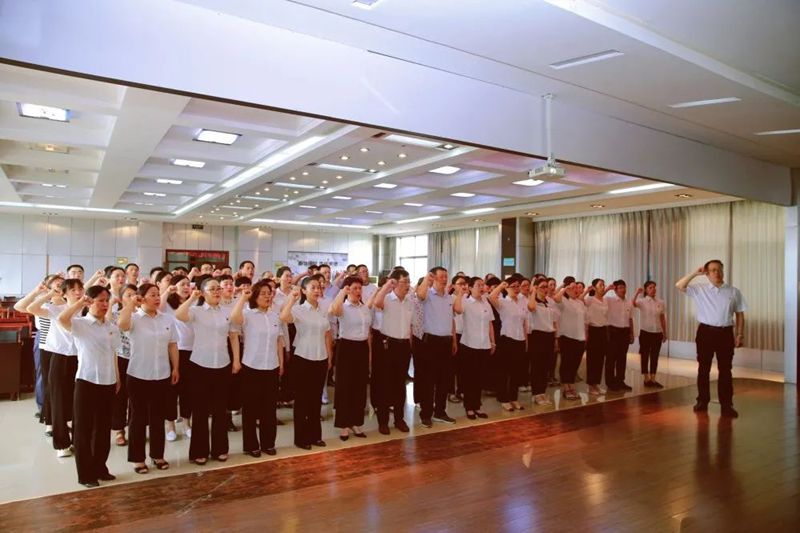 7月1日上午,市优抚医院组织开展“七一”党员集中宣誓仪式。党总支书记李学军同志领誓,80名党员面向党旗,高举右拳郑重宣誓。回溯初心、牢记使命,铮铮誓言将用一生践行!宣誓结束后,医院全体职工共同观看了庆祝中国共产党成立100周年大会直播。