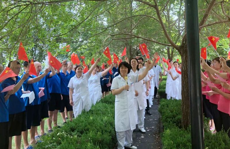 以党建为引领,市优抚医院病区支部、院办支部不忘初心,牢记使命,联合护理部开展医护患“庆七一”活动。广大党员干部与住院优抚对象齐唱红歌,用最美的歌声,传唱红色歌曲,传承红色精神,为党的百年华诞献礼。
